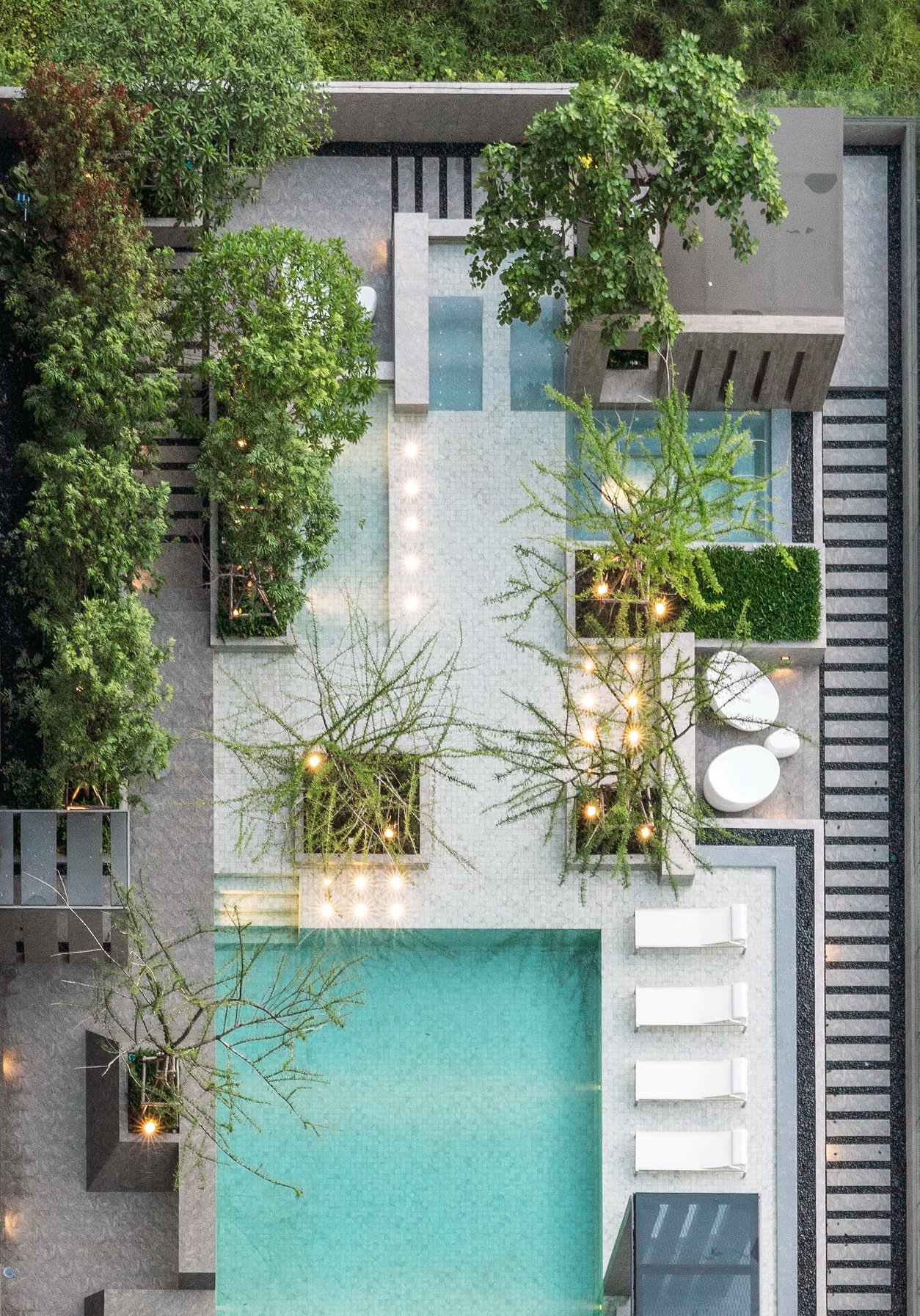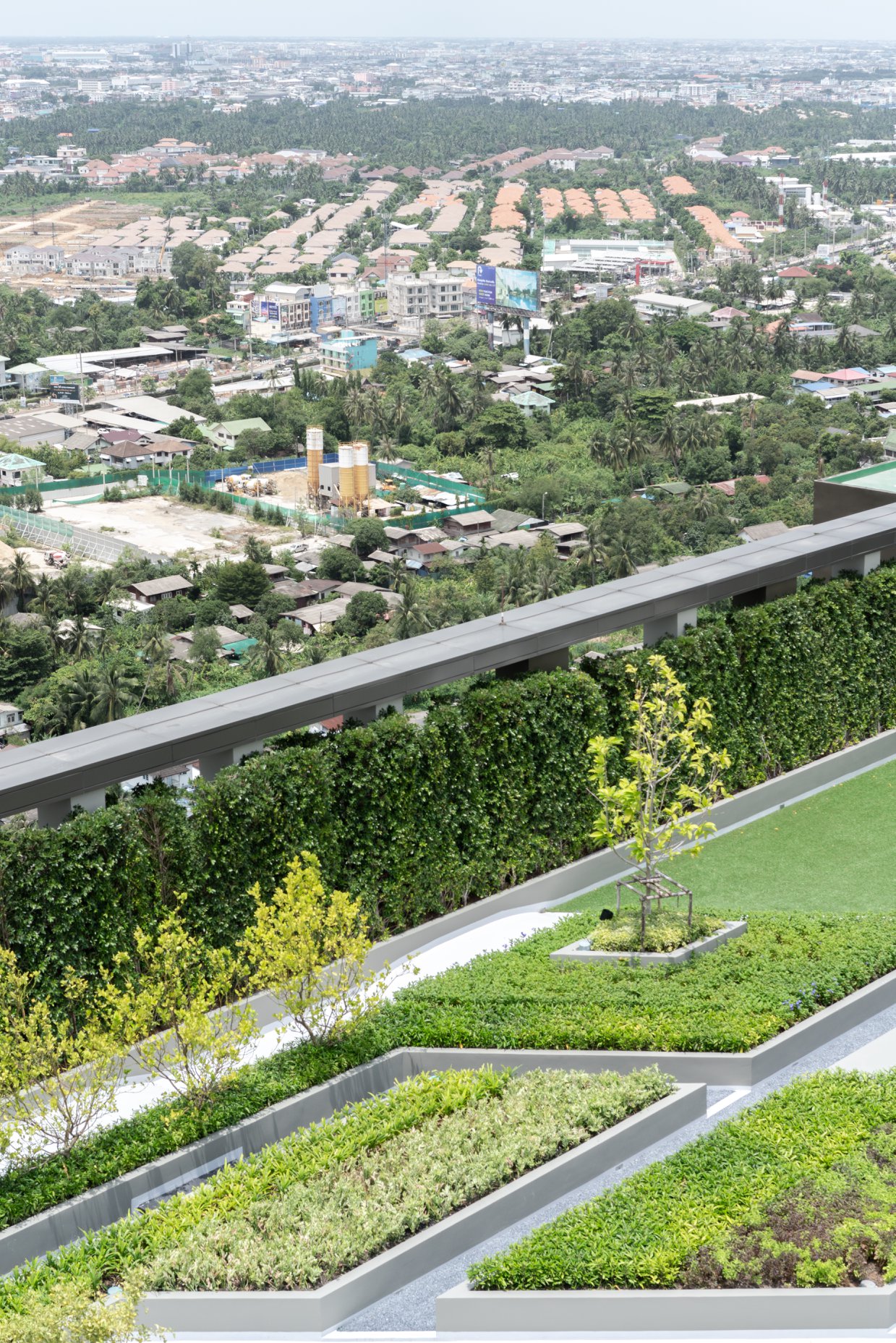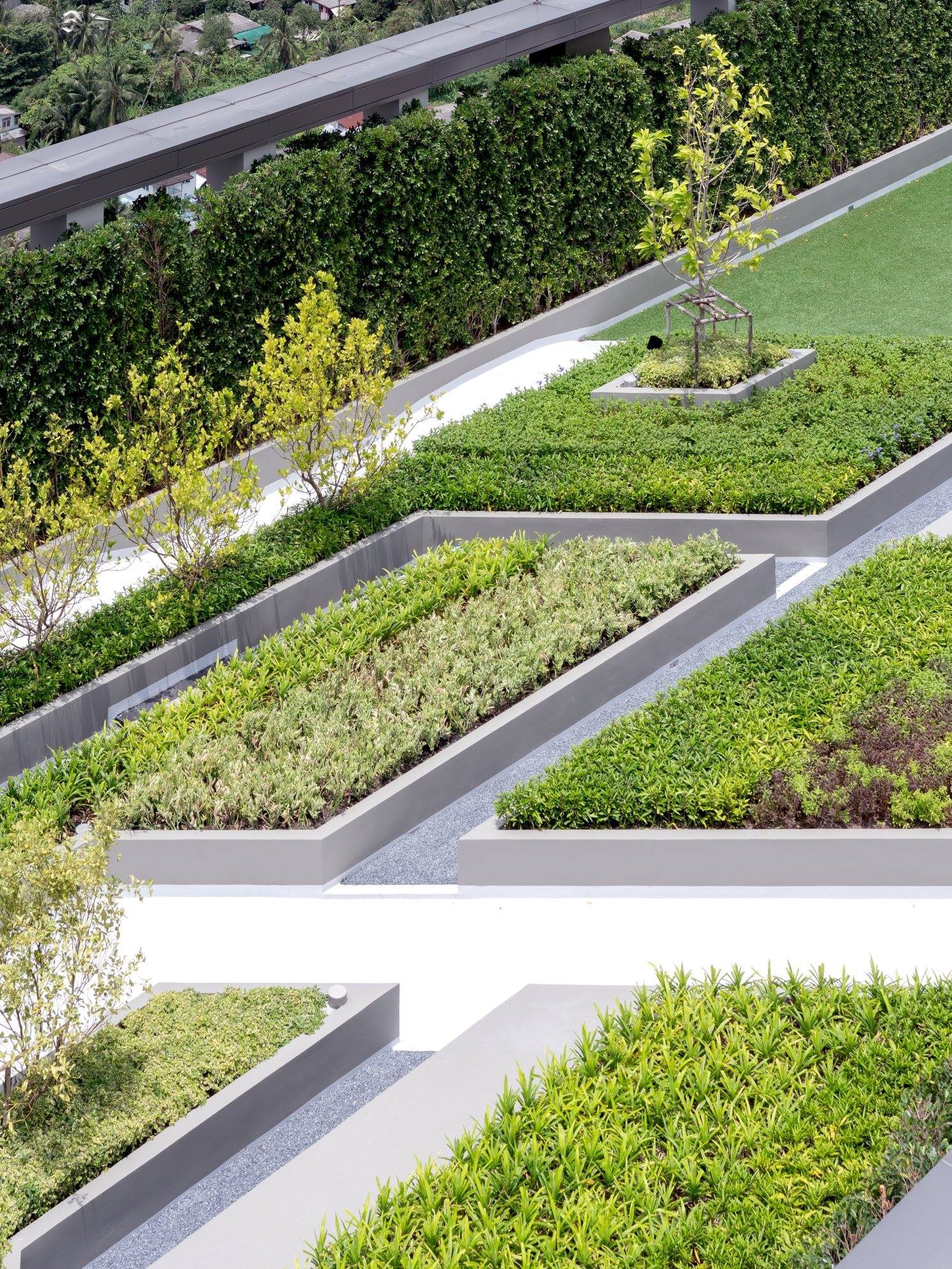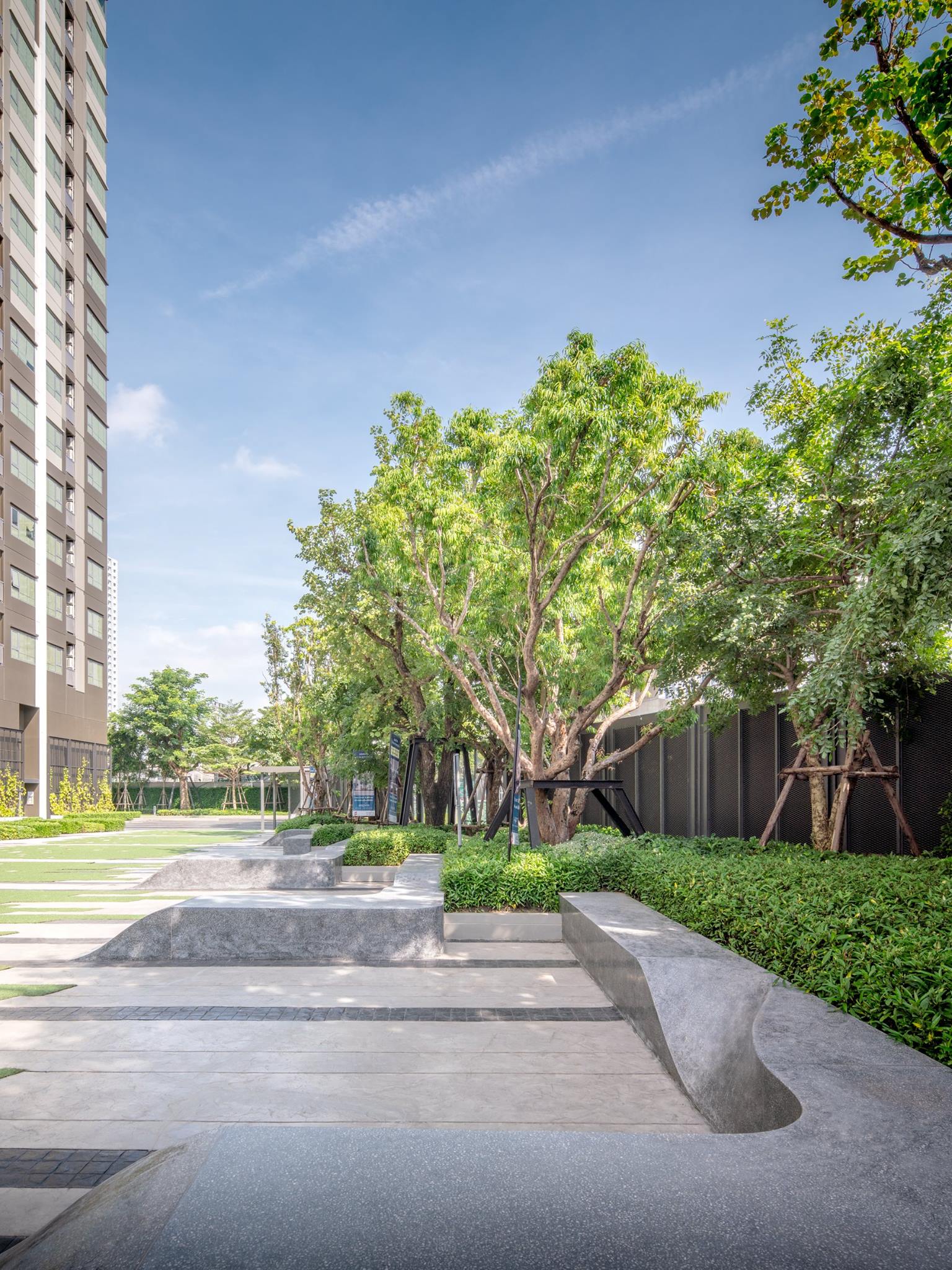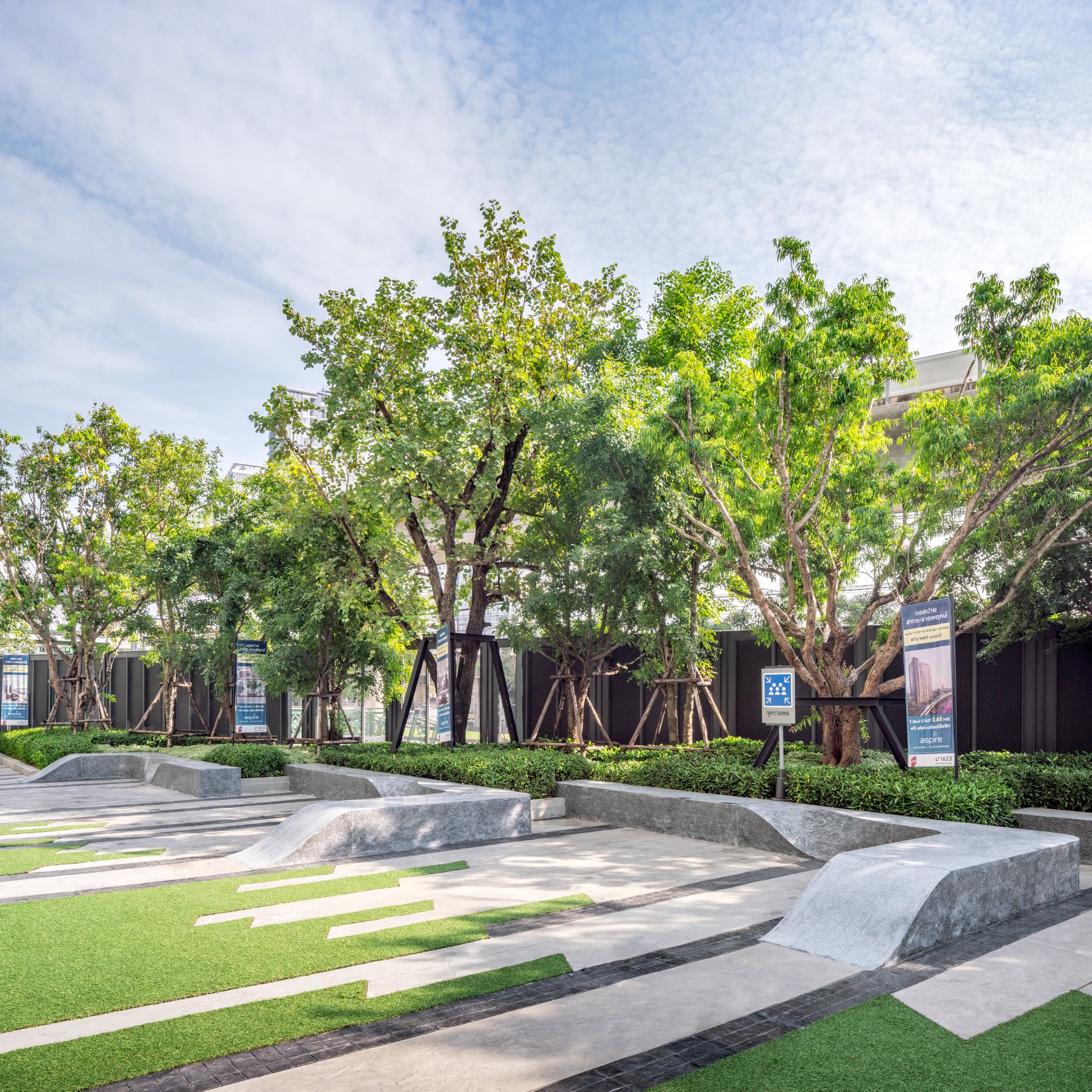 Aspire Sathorn Ratchapruek by Asian Property PLC (AP), located near BTS Bangwa station (the westernmost station in 2018), is the 32 storey condominium launched in 2015 and completely finished the construction in 2018. Inspired by the site context, formerly known as the agricultural zone which turned to be an upcoming urban fabric at the advent of sky train infrastructure, the design concept subtly illustrates the "edge" of the city with the "Blur" boundary between city and outskirt. Therefore, the design concept represents the boundless of two elements; natural and urban, horizontal and vertical, simplicity and complication, rough and smooth...etc. The boundless effects strategically create the unique space settings, interesting visual perceptions and special functional spaces serving the lifestyle of the residents as well as the integration of the landscape, interior and the architecture.