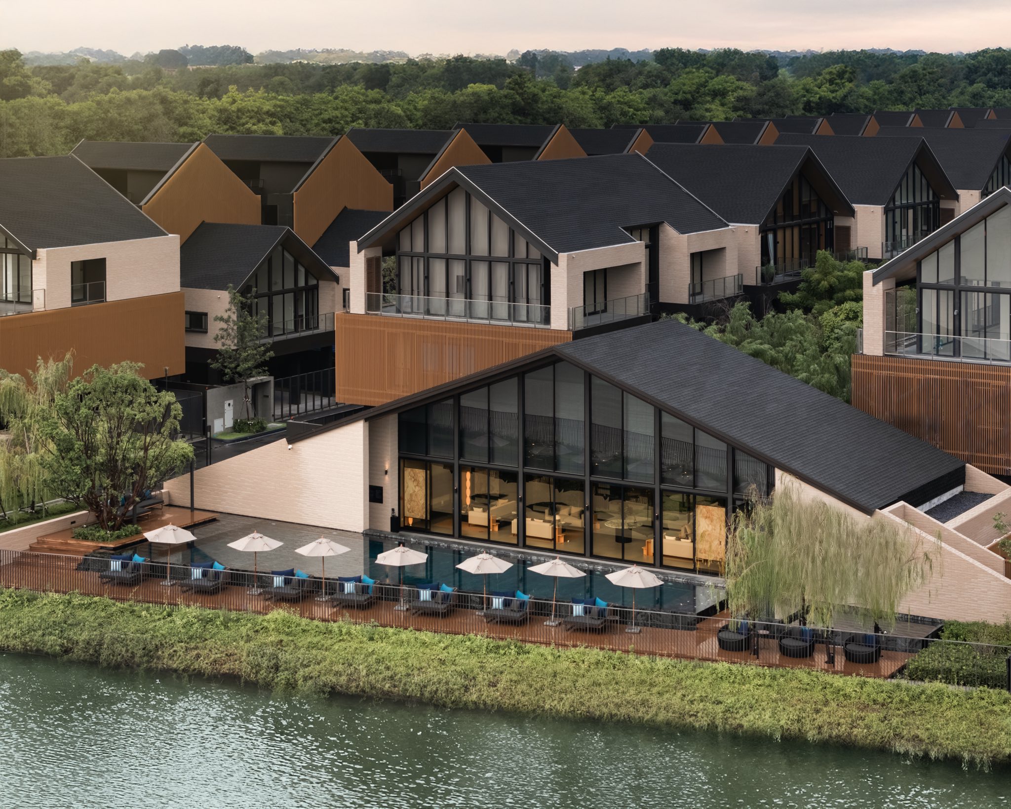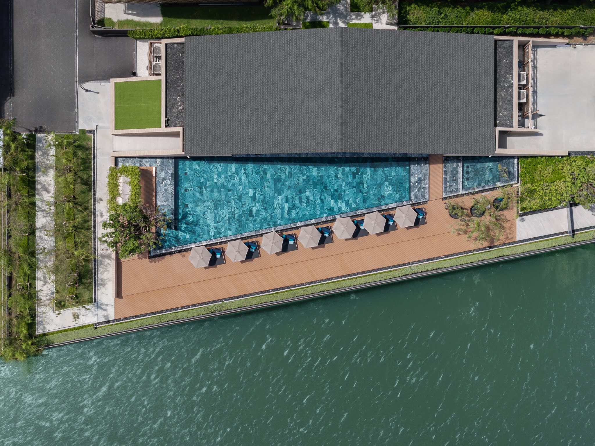 Meanwhile landscape design strategically harmonizes the relationship between architecture, interior and exterior spaces serving restorative greenery concept which green matters to quality of life as well as delicately creates the landscape design’s setting and design element inspired by the river.