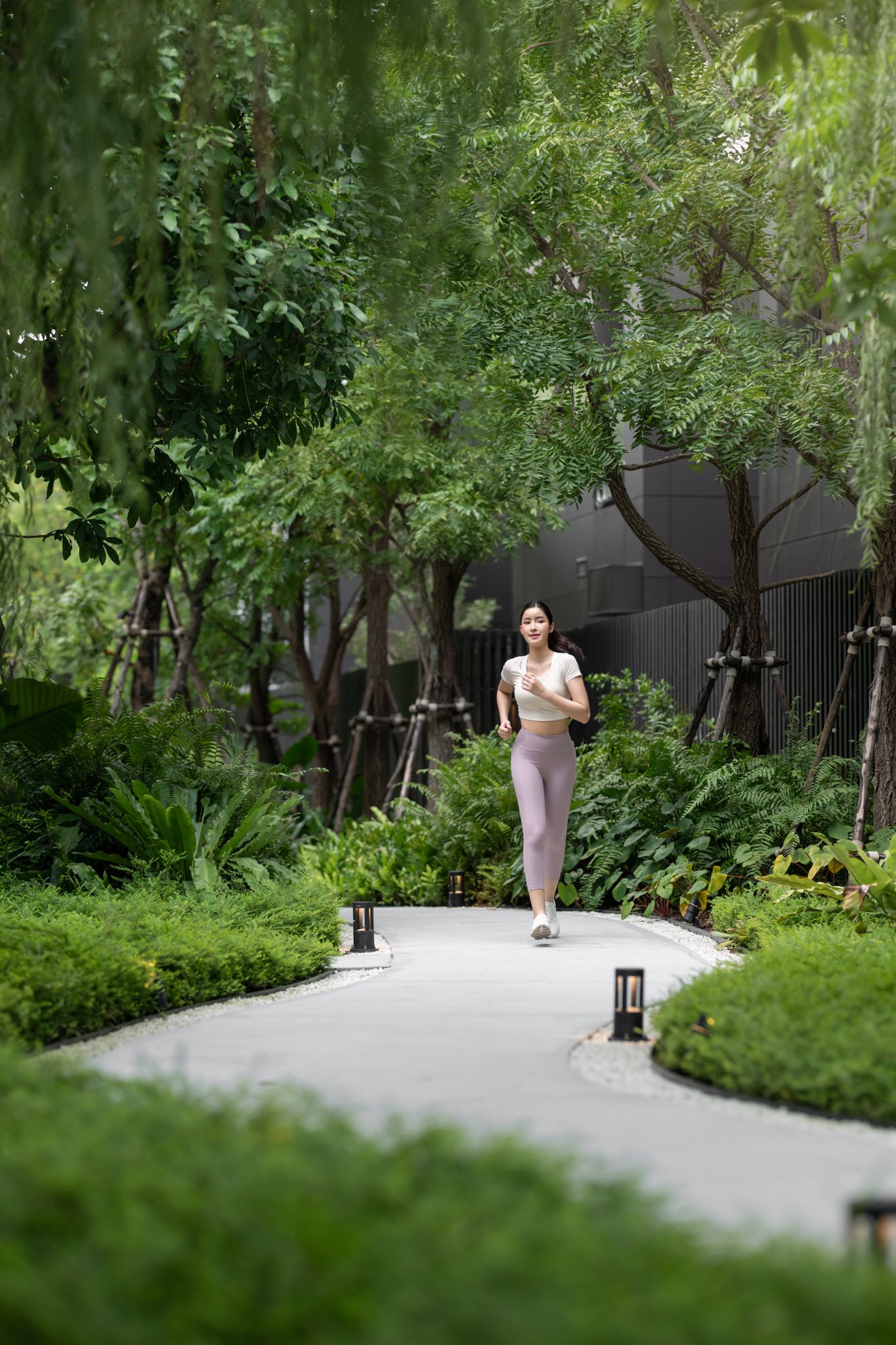 Main linear park, serving as green belt and Backyard garden simultaneously, creates the accessibility between River Lounge and Fitness Center. The multi-layering plantation is strategically designed to enhance privacy & exclusivity between houses and to elevate the intimacy & Human touch as an immersive journey along the pathway. The linear green space, divided into 4 parts, is inspired by the phenomenon of the river with undulating landforms, meandering paths, stepping walks and various garden settings.