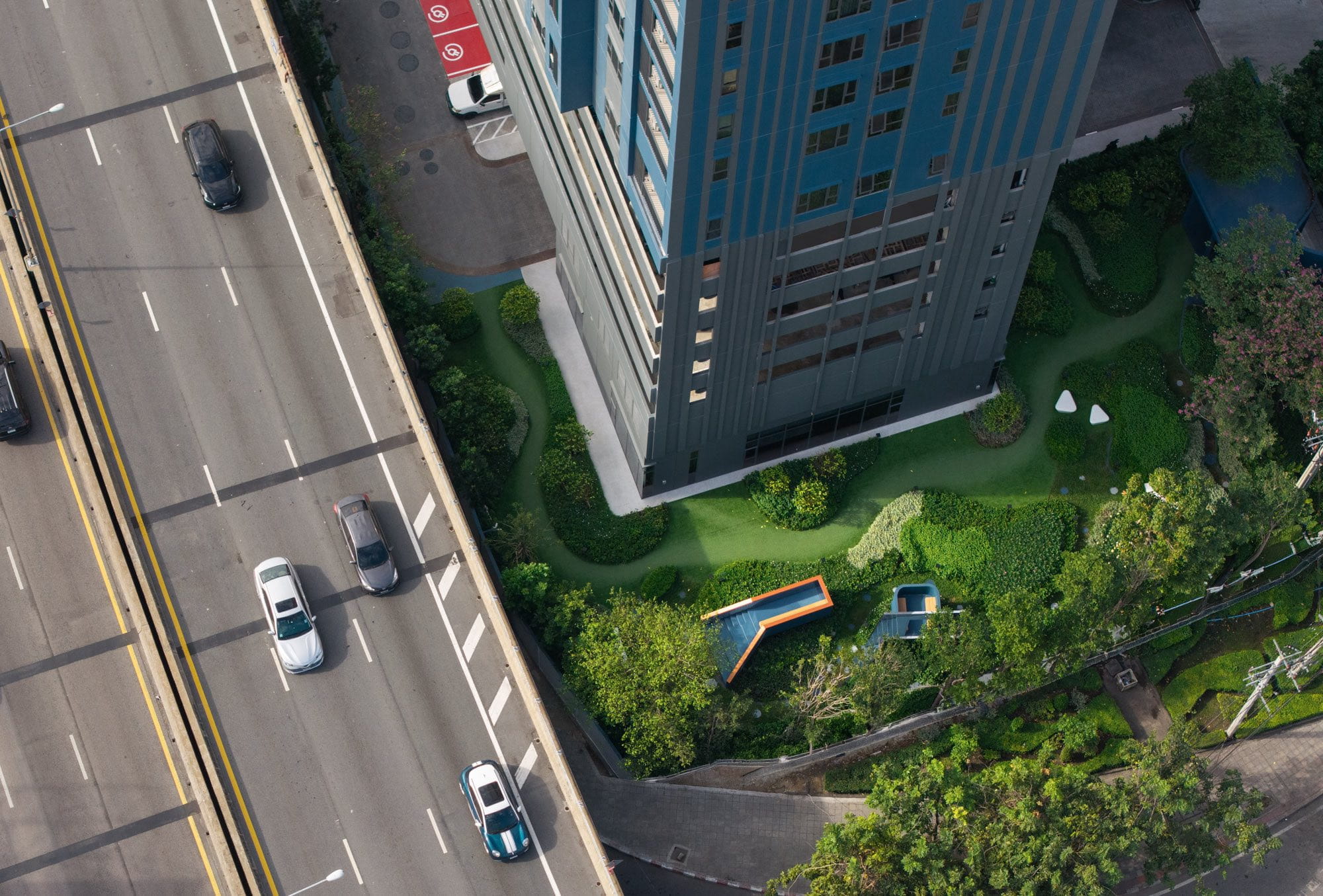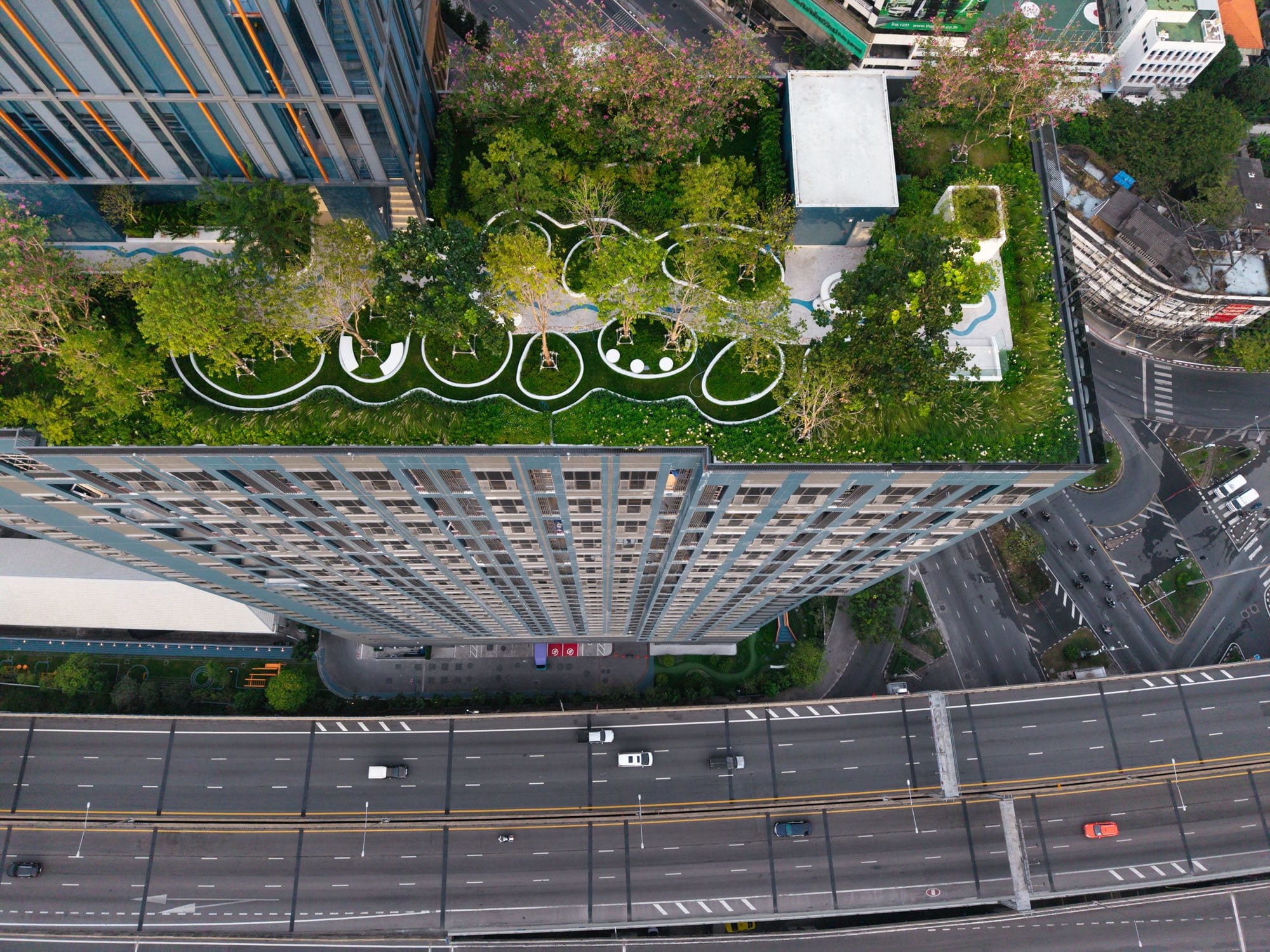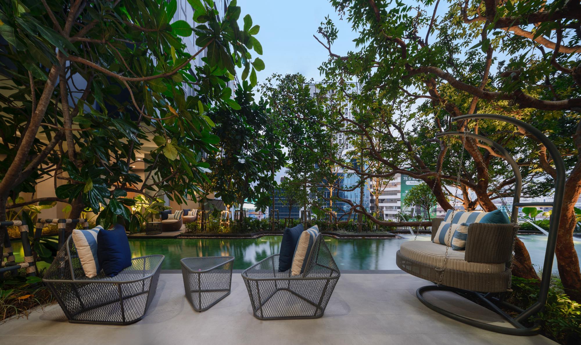 The landscape design aims to enhance the living quality of this residential development located adjacent to the expressway in the center of Bangkok among the bustle and hustle district of Thailand’s capital city.