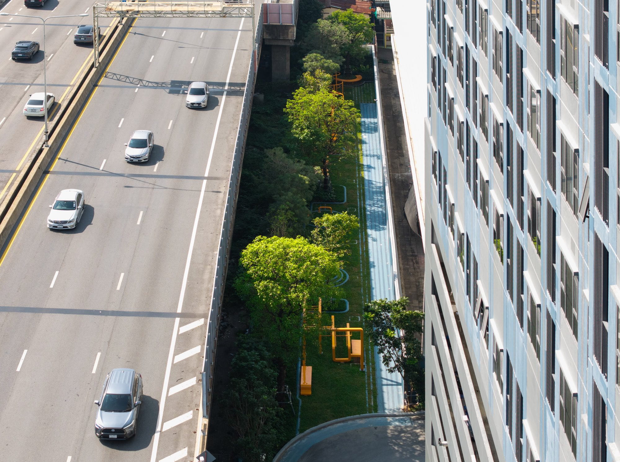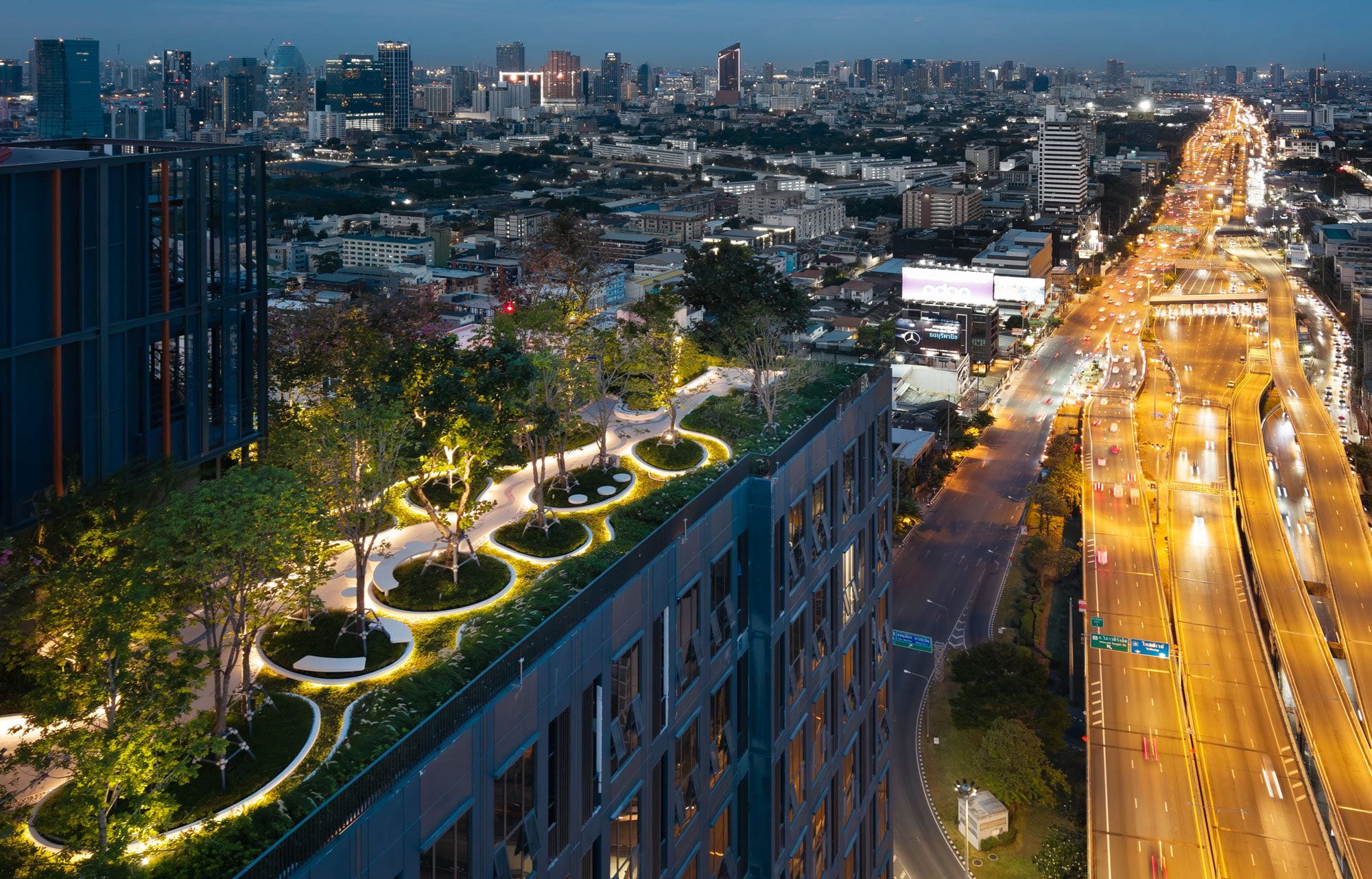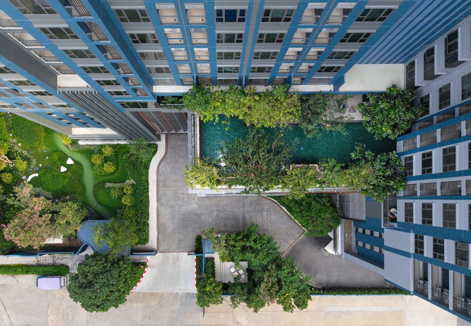 The landscape design aims to enhance the living quality of this residential development located adjacent to the expressway in the center of Bangkok among the bustle and hustle district of Thailand’s capital city.