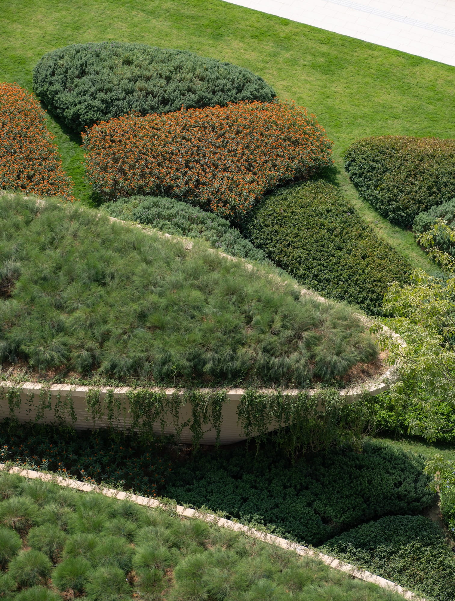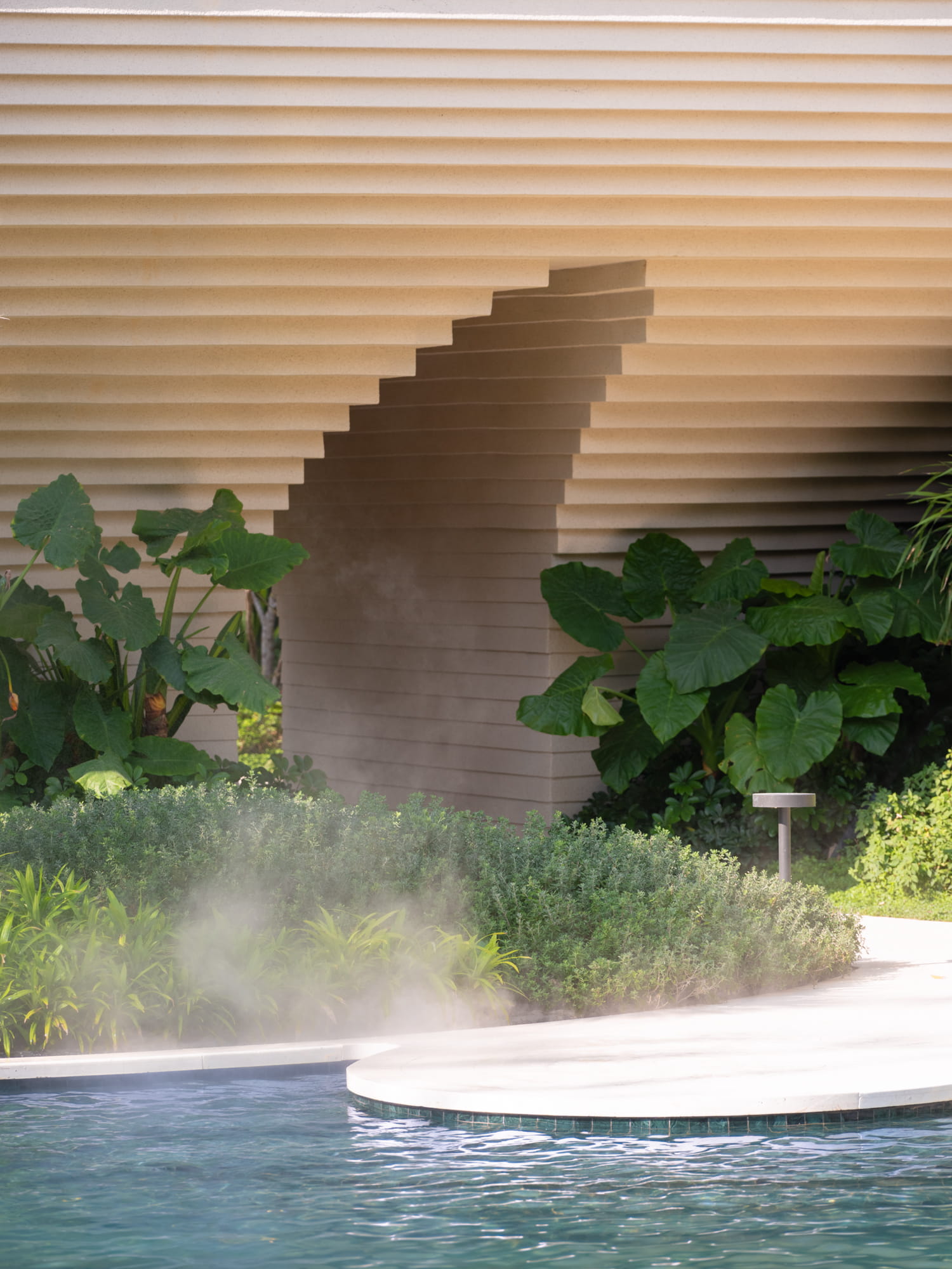 Subtle variations in water levels and pool edges define each zone while creating visual depth and facilitating natural water flow from higher to lower levels. This cascading sequence enhances continuity and reinforces the overall water narrative.