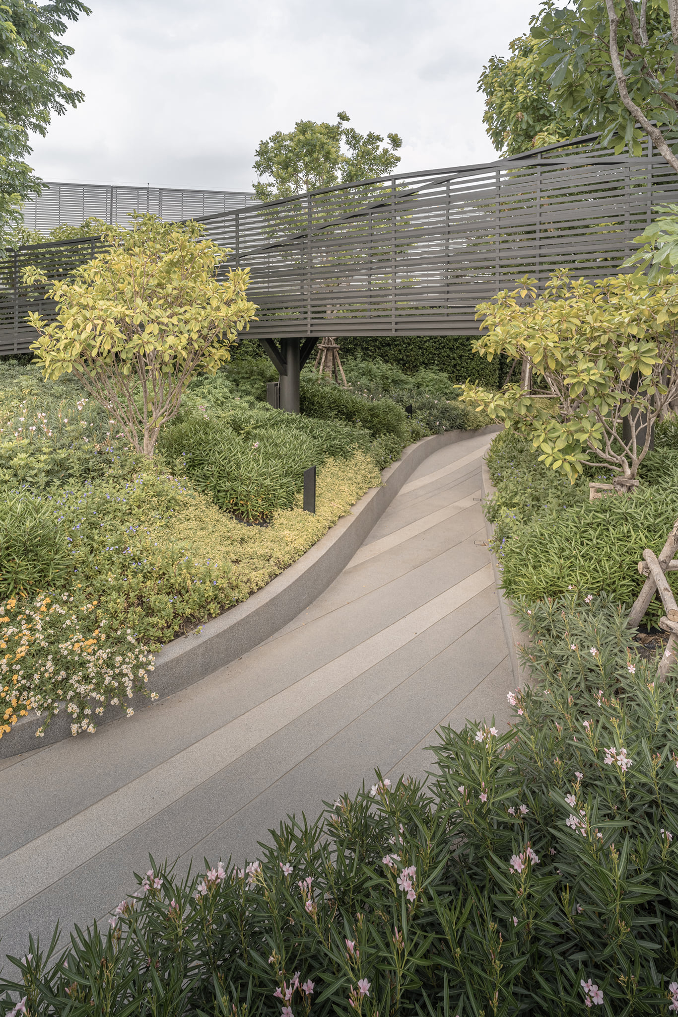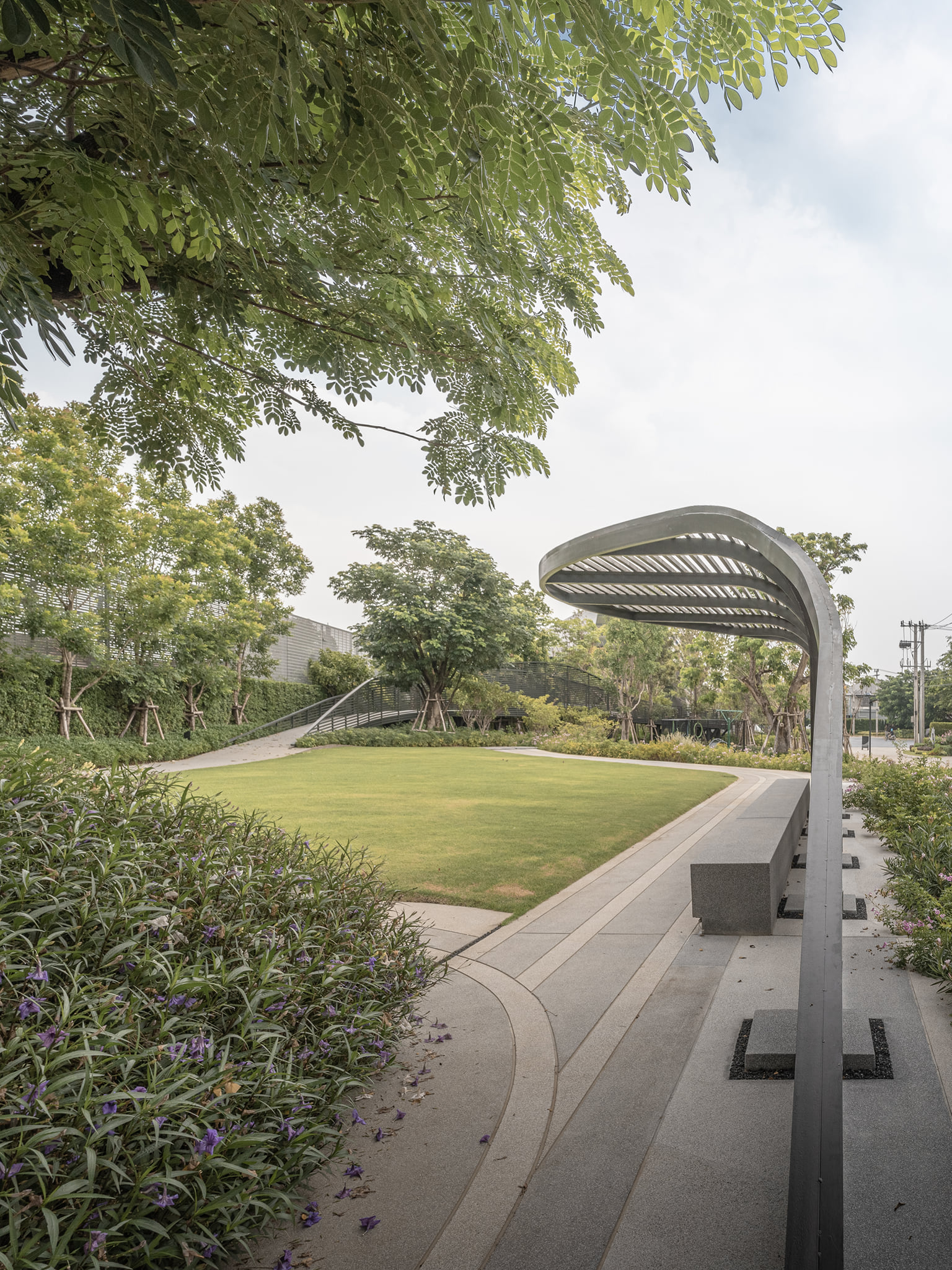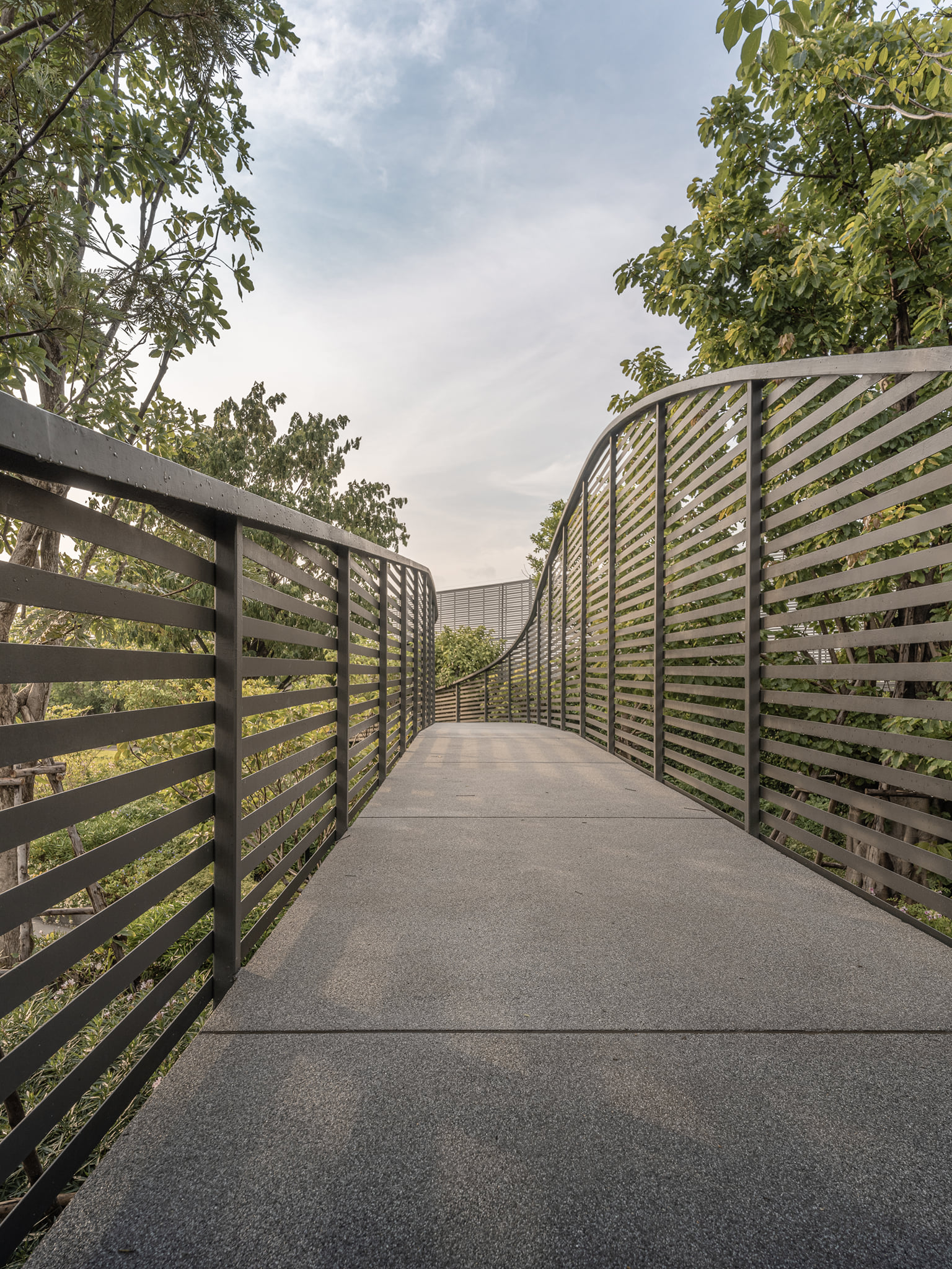 The boundless meandering path, strategically designed as universal design, aims to create the mesmerized experiences of the park in different perspectives from the tree top at the upper level, the large open lawn at the intermediate level to the pleasant intimate garden settings on the ground level.