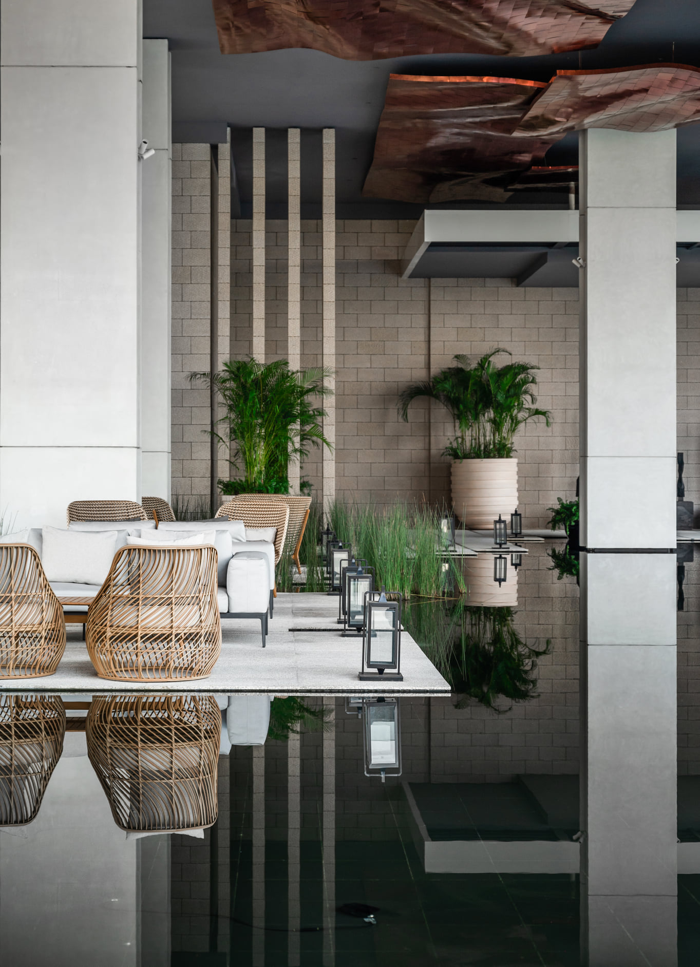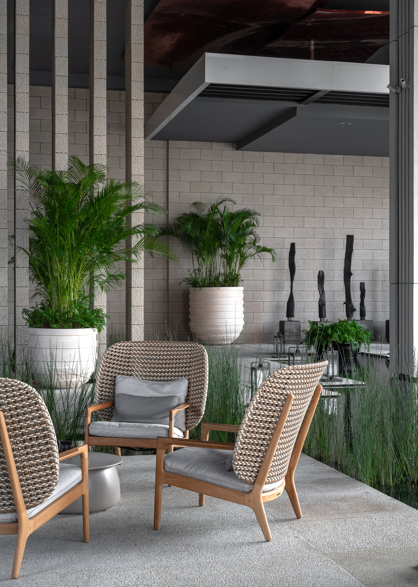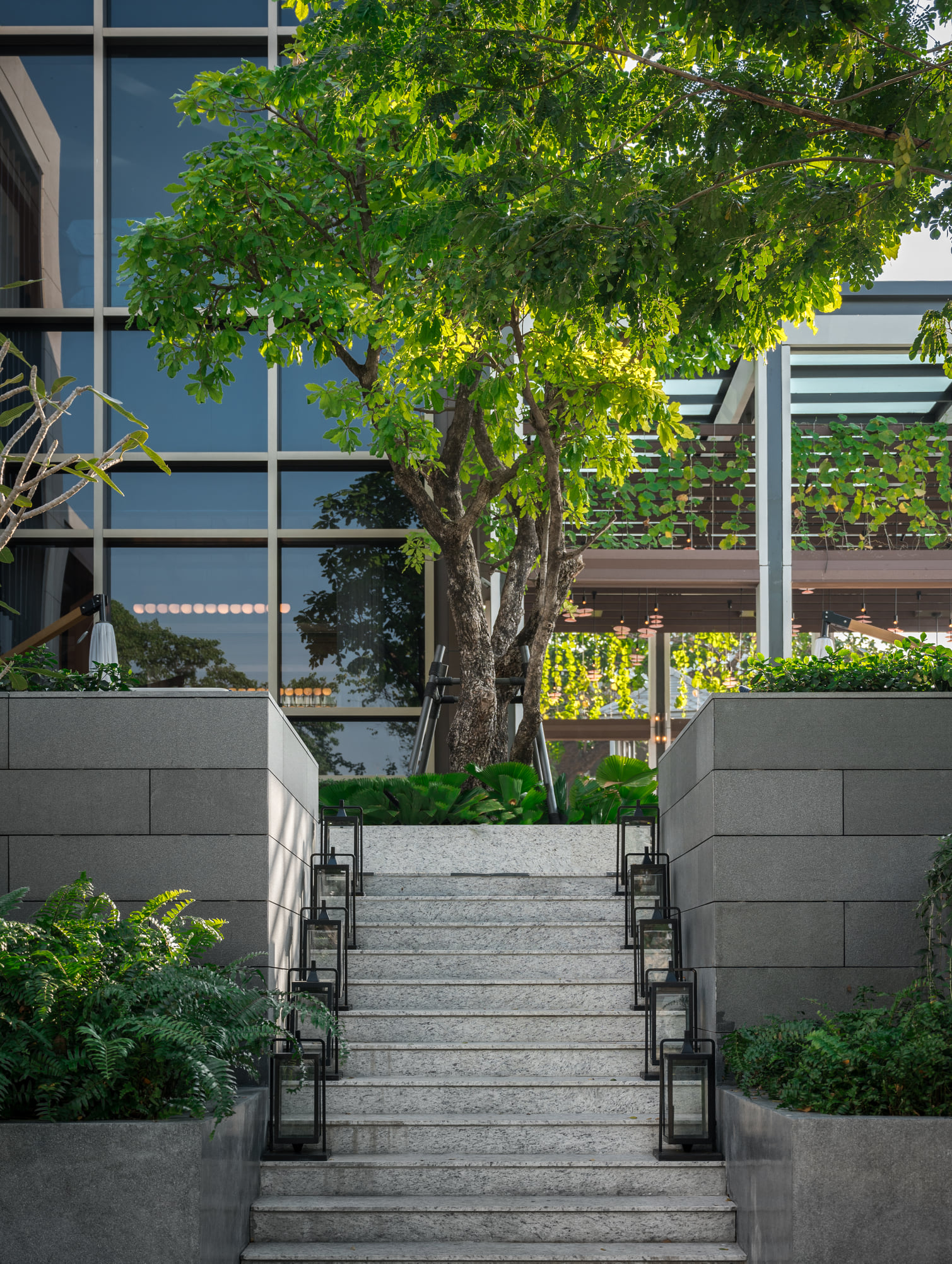 Meticulously embraced by simple layers of lush greenery in high relation with the preserved existing trees, the swimming pool, pool terraces and waterfront promenade elegantly mesmerize the riverside experiences with the essence of serenity
